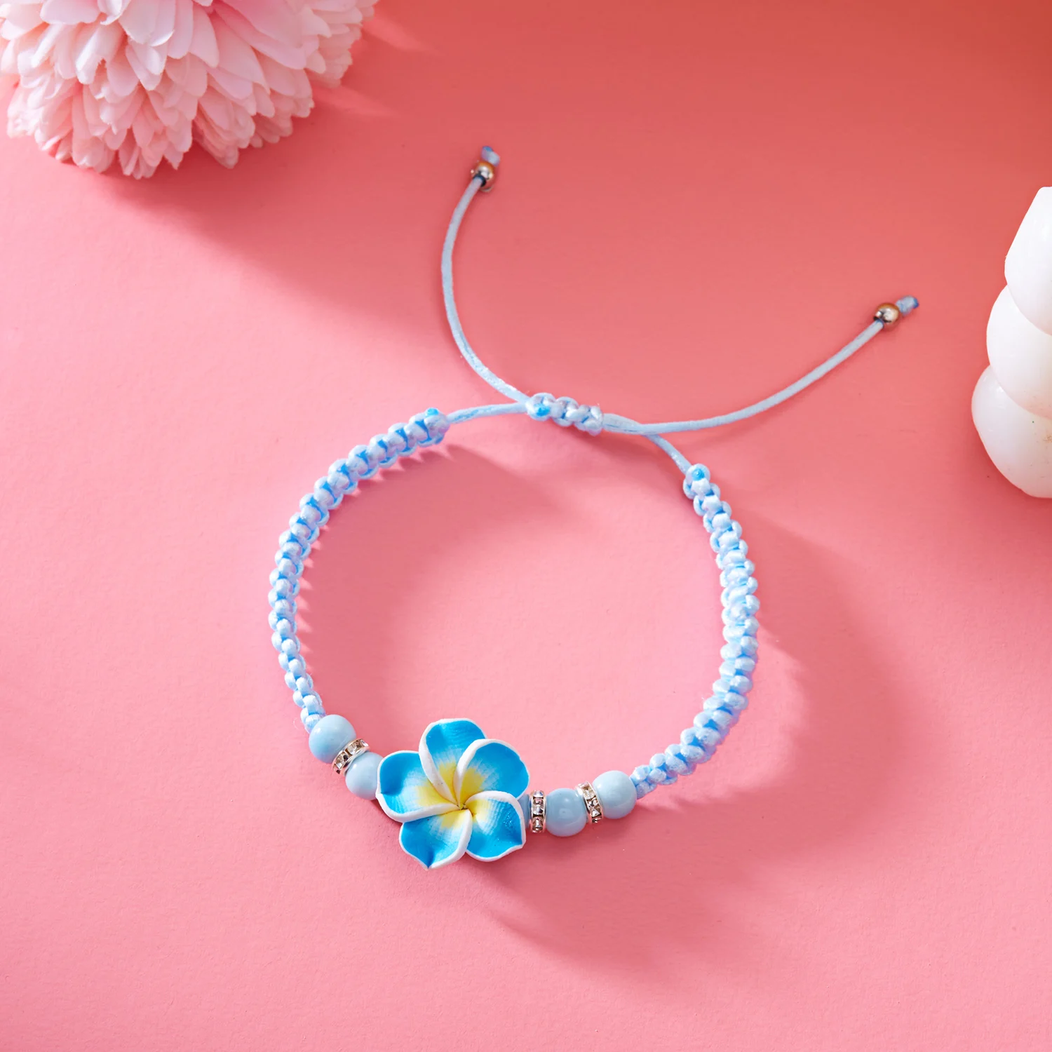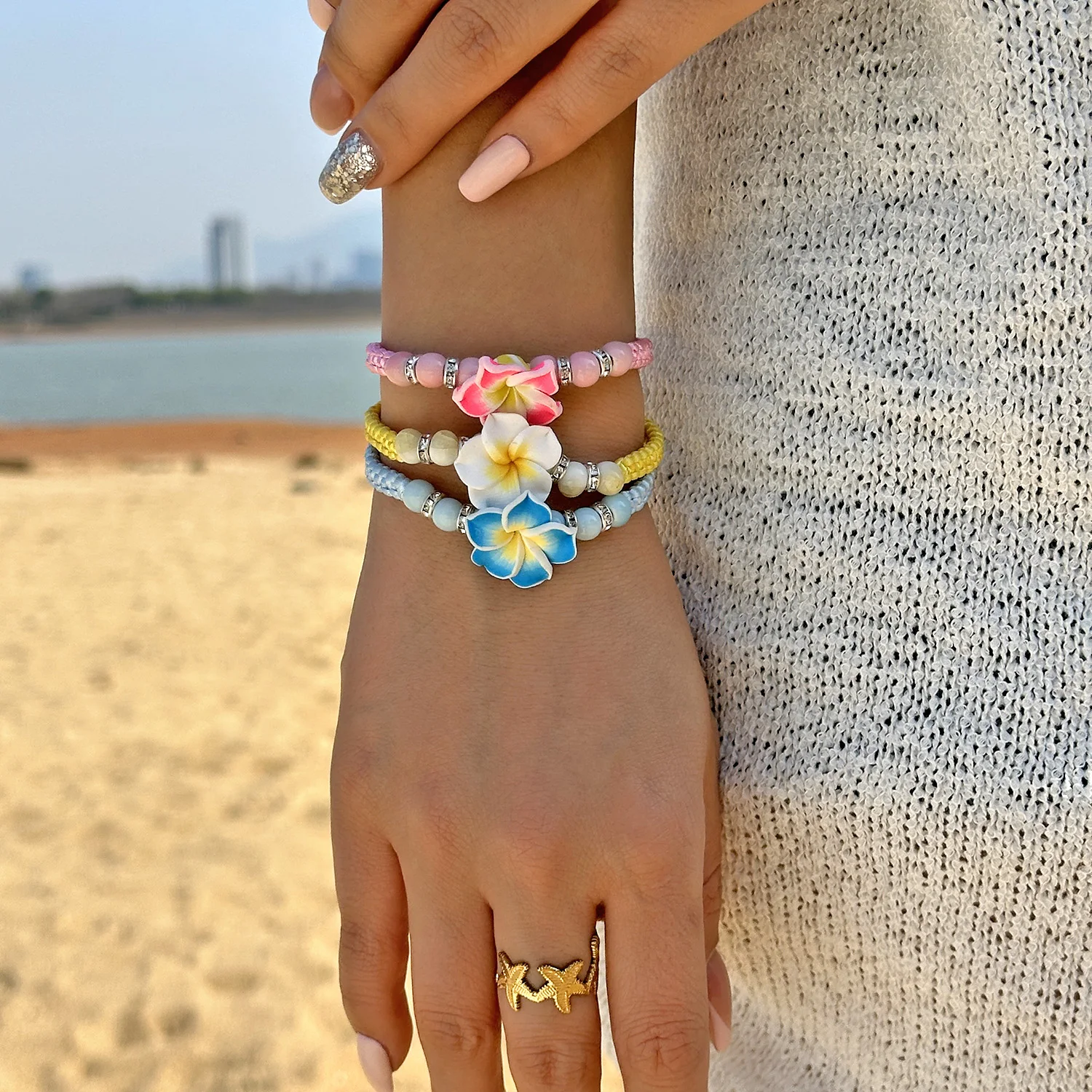 Luckacco 2025 New Bohemian Colorful Big Flower Polymer Clay Bracelet for Women Charm Handmade Woven Bangles Summer Beach Jewelry Gift