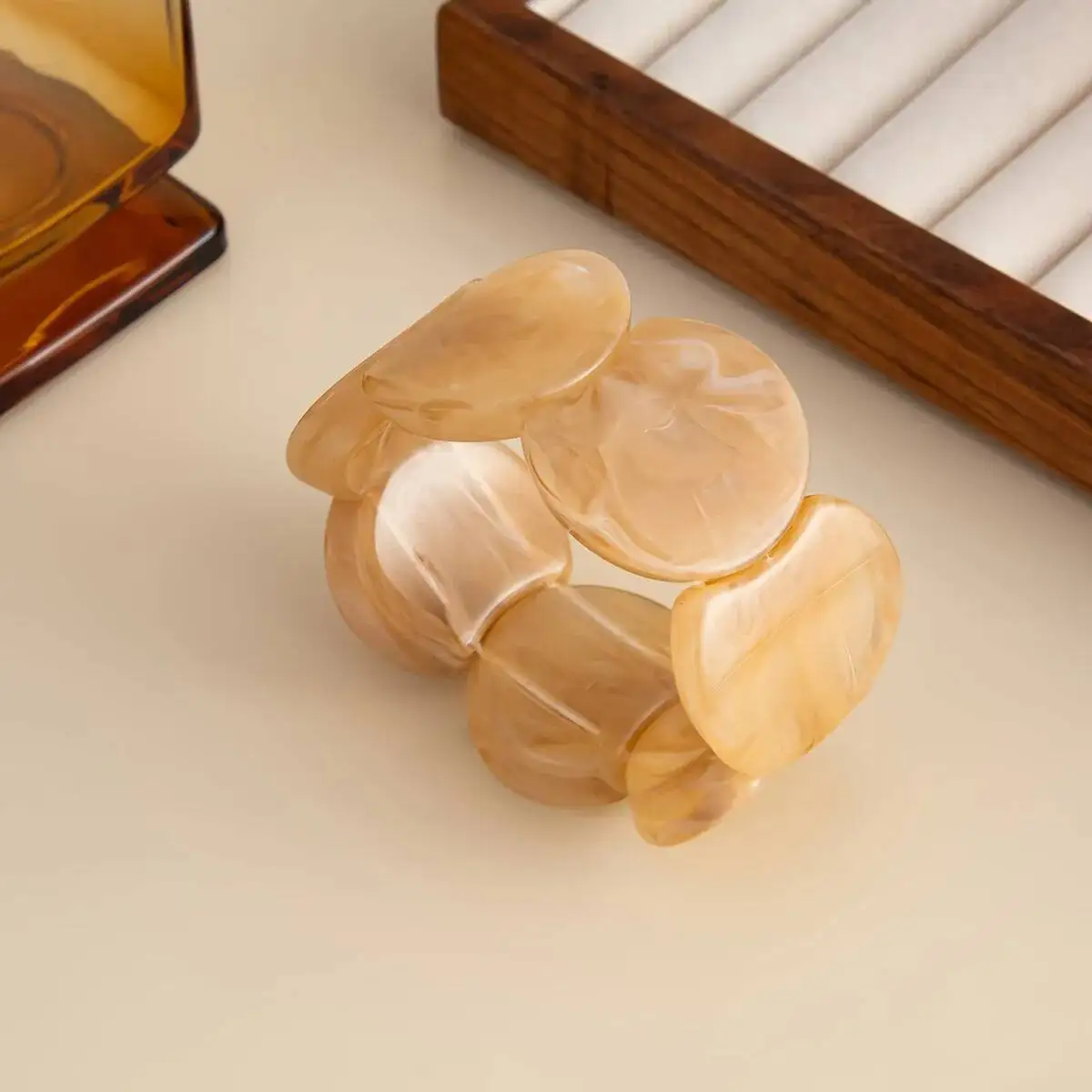 Luckacco 6 Style Boho Punk Geometric Acrylic Resin Elasticity Bangles for Women Vintage CCB Beads Bangle Bracelets Charm Jewelry