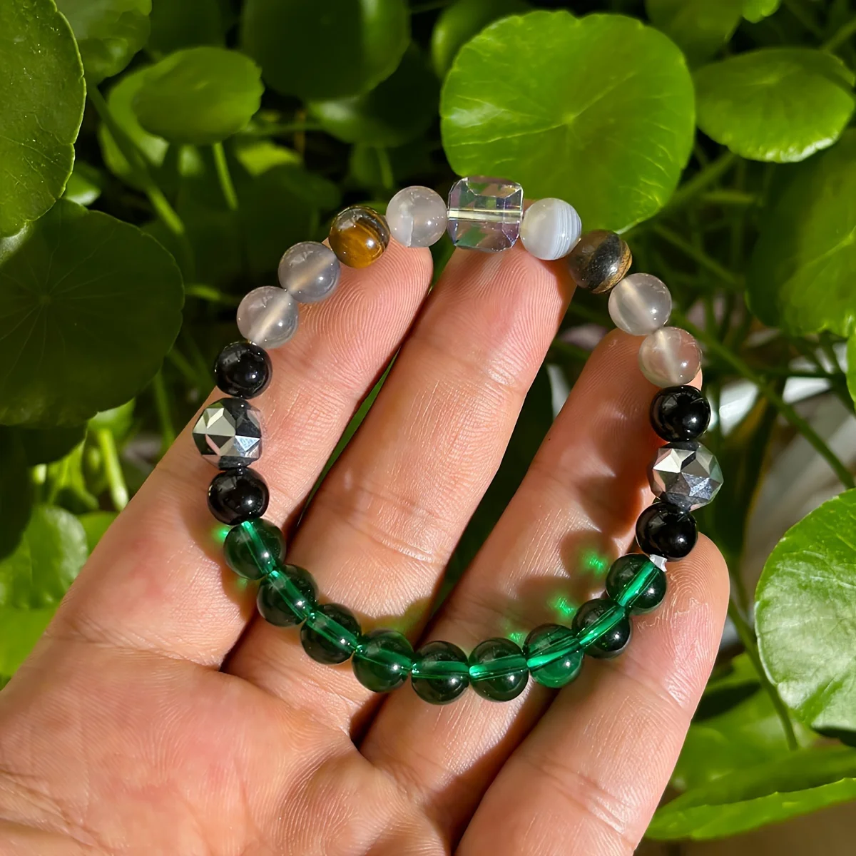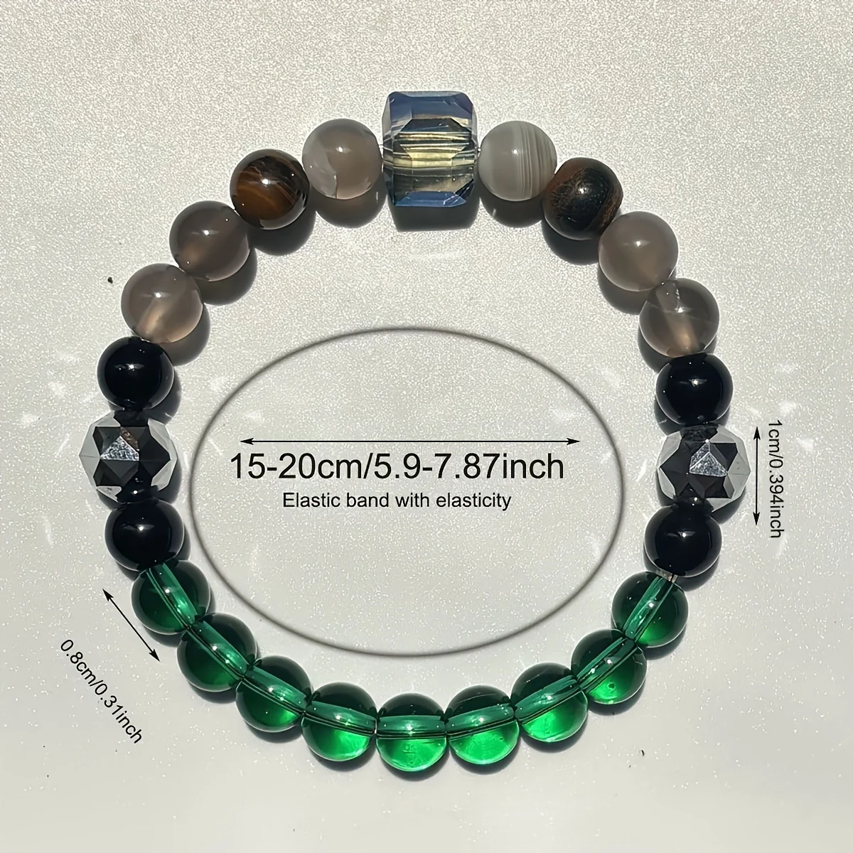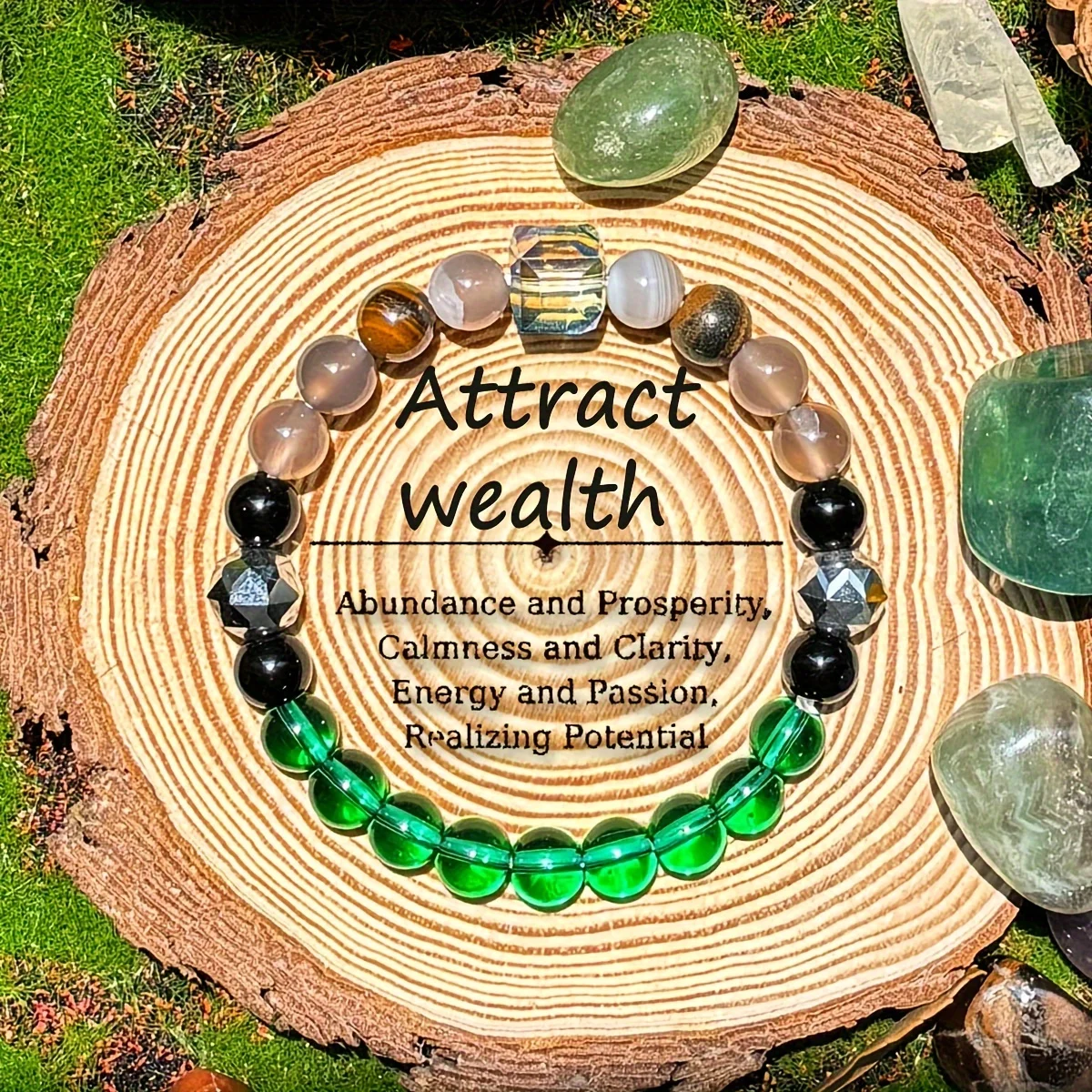 Luckacco Attract Wealth Abundance and Prosperity Bracelet Made of Tiger Eye Stone and Green Healing Crystal Handmade Bracelet for Men and
