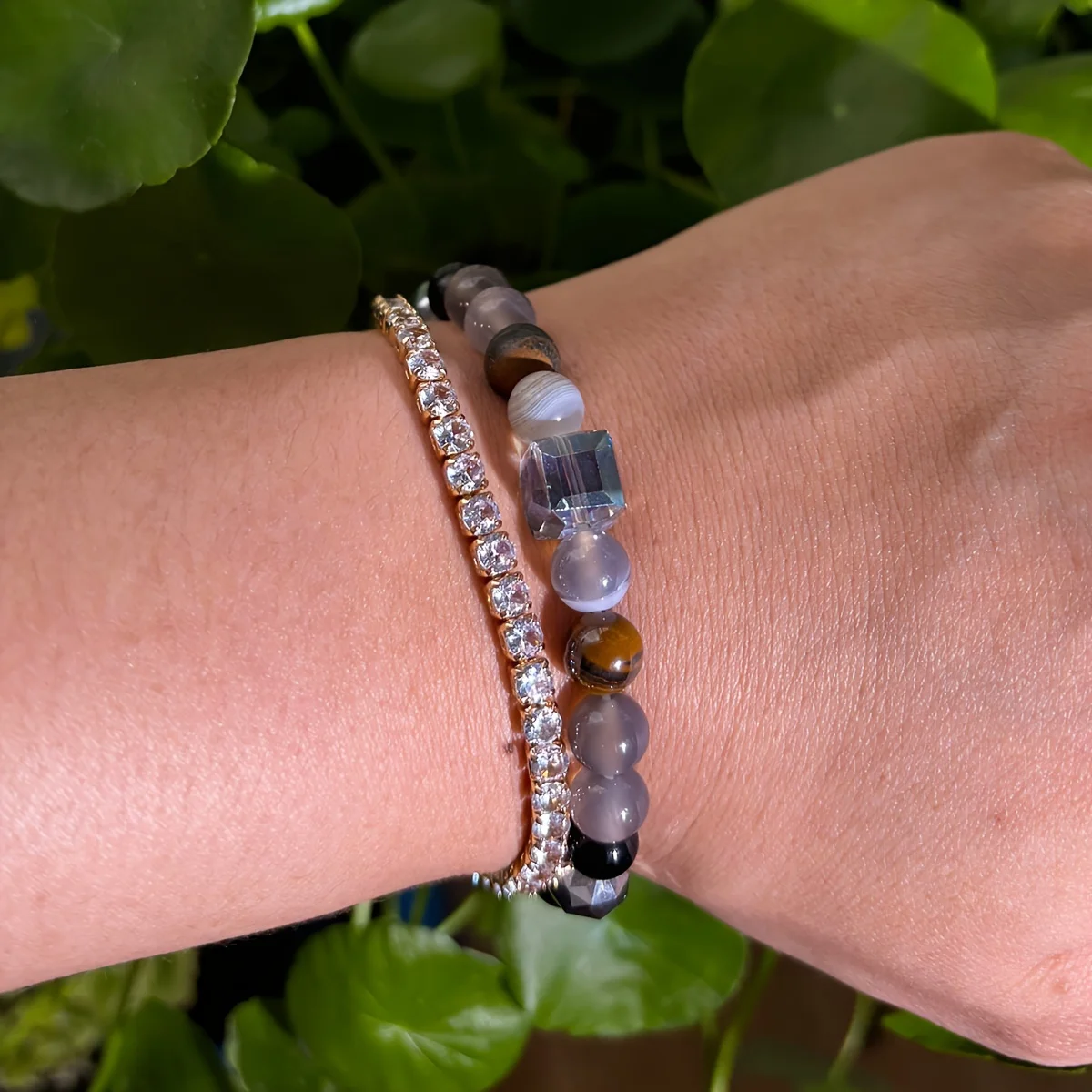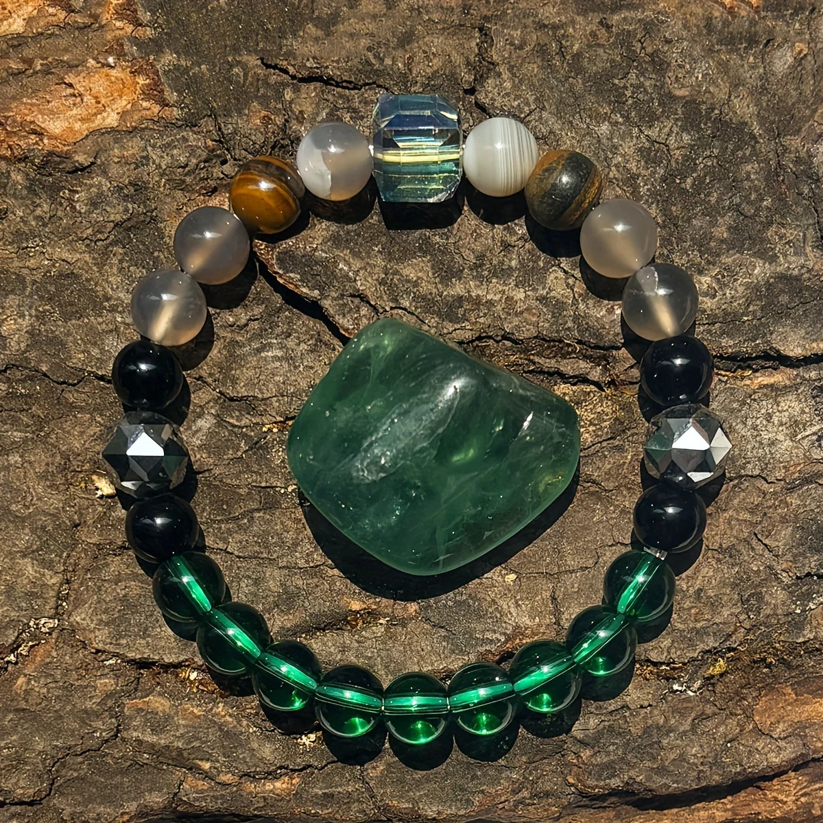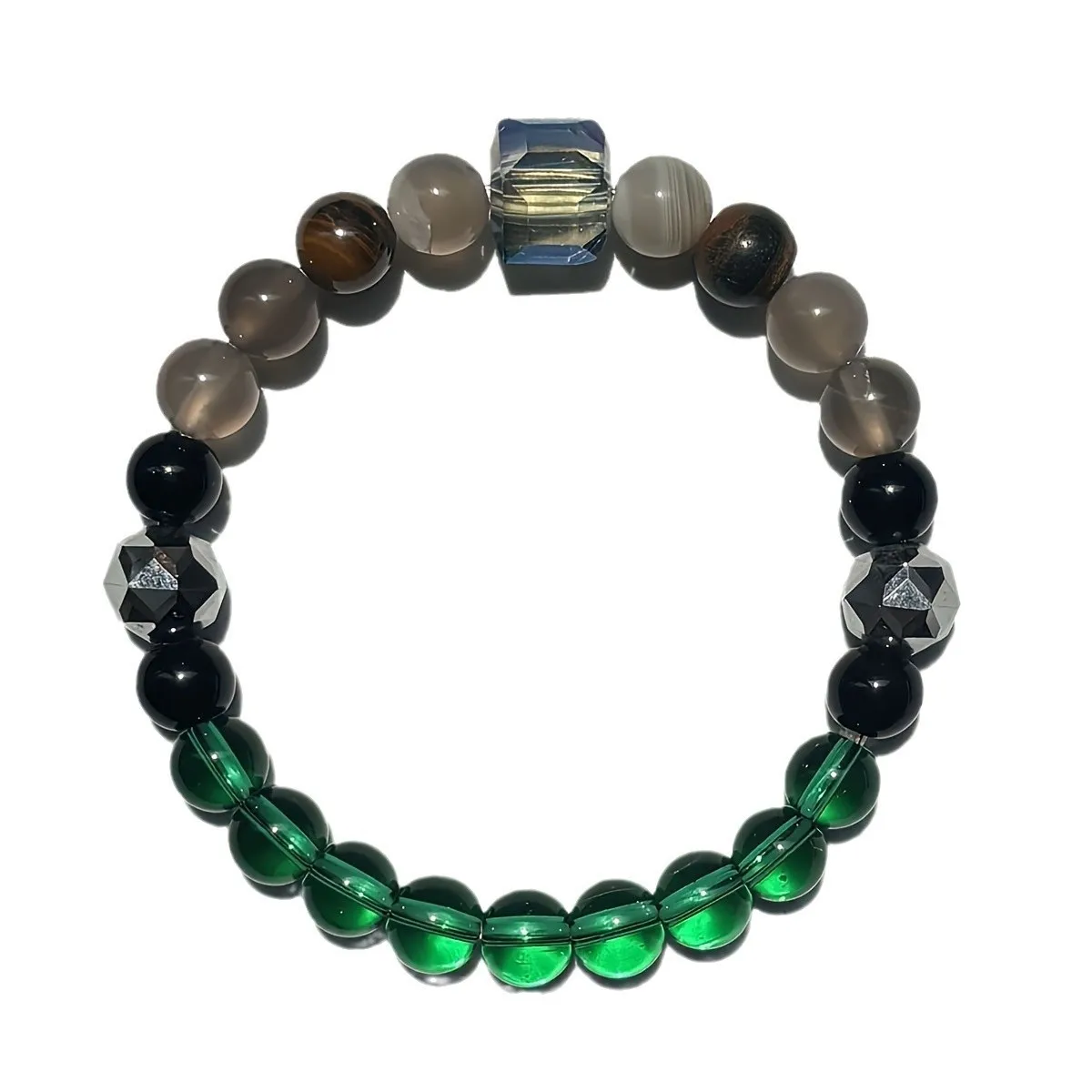 Luckacco Attract Wealth Abundance and Prosperity Bracelet Made of Tiger Eye Stone and Green Healing Crystal Handmade Bracelet for Men and