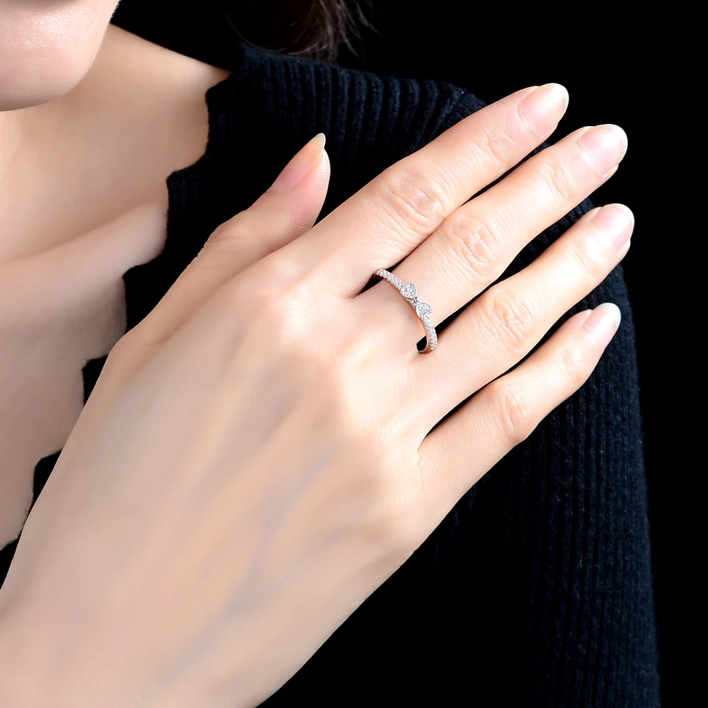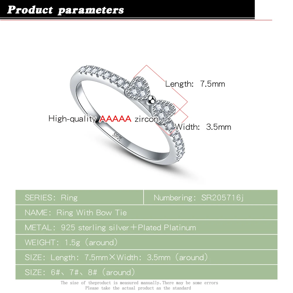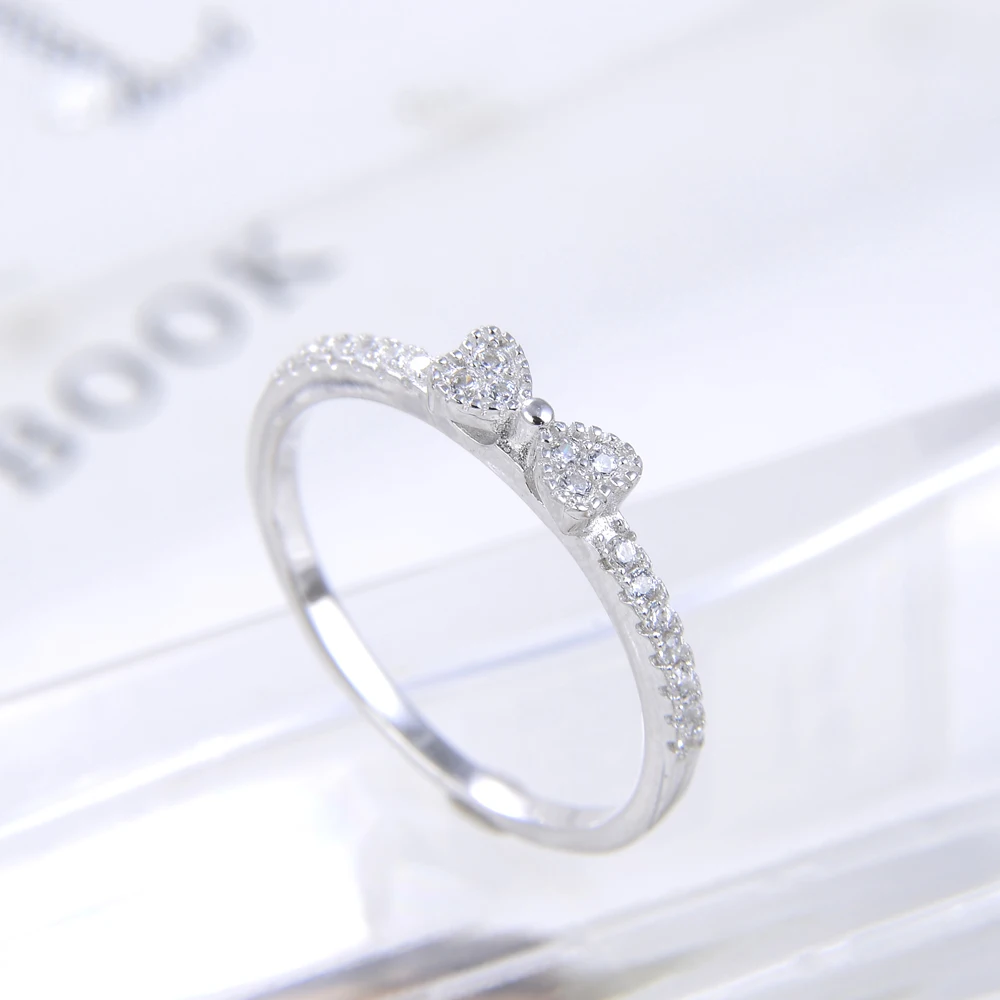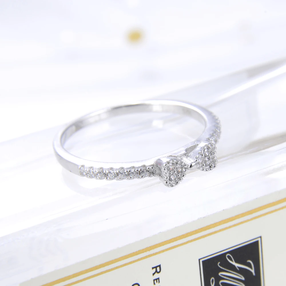 Luckacco Elegant 925 Sterling Silver Bow Shape Ring Round Zircon Diamant Band Lightweight Accessories Women Classic Jewelry