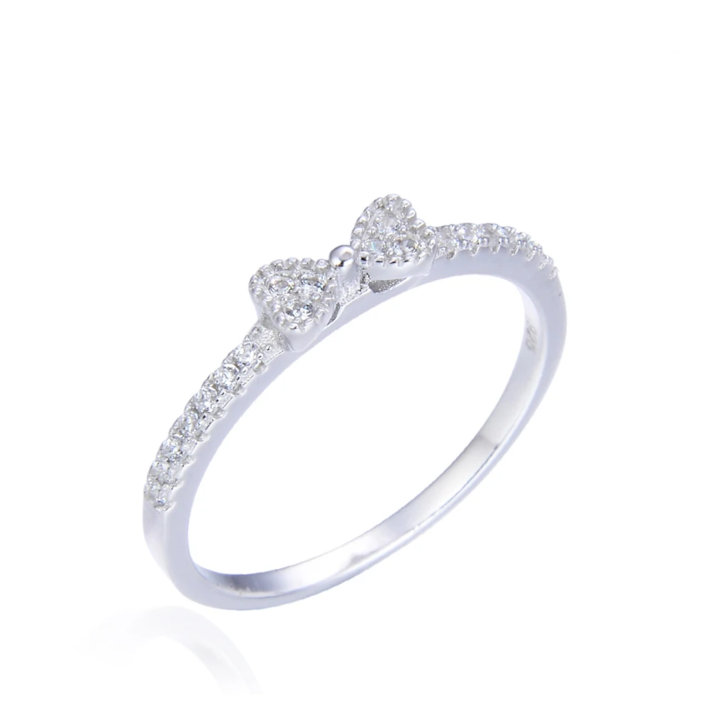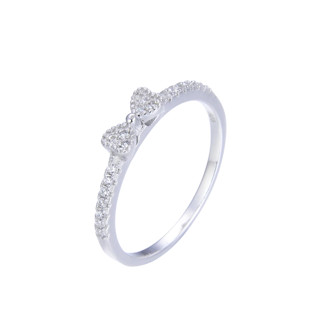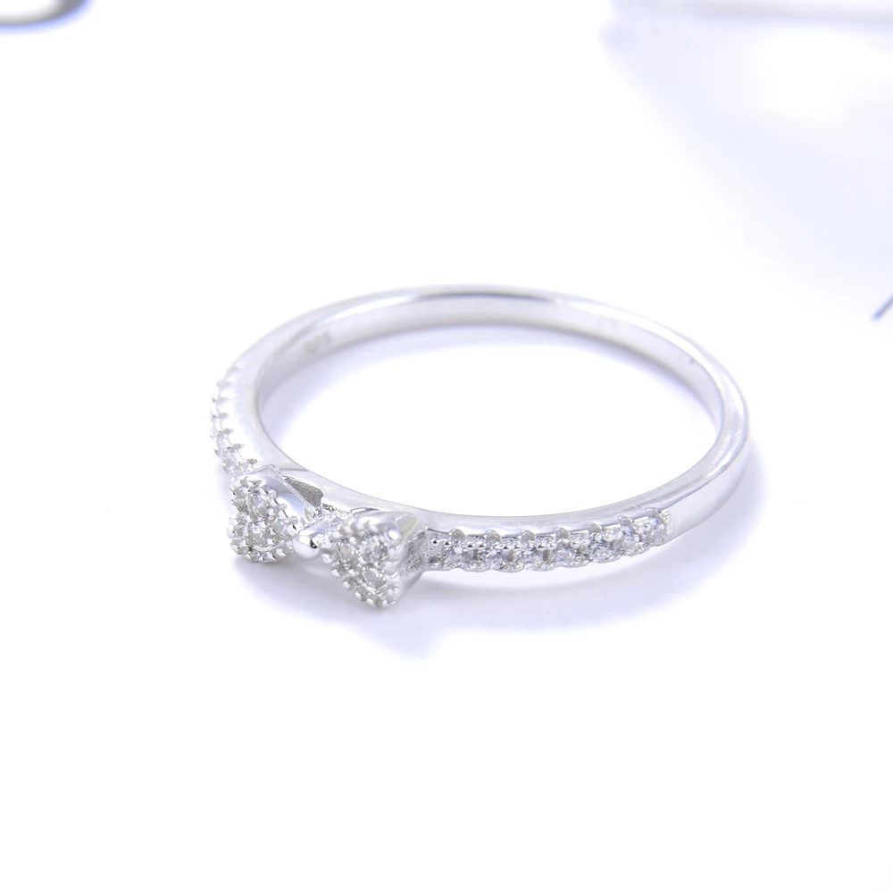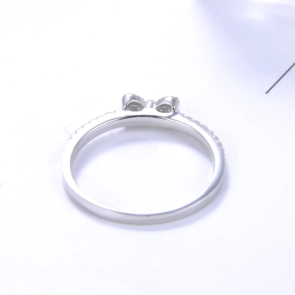 Luckacco Elegant 925 Sterling Silver Bow Shape Ring Round Zircon Diamant Band Lightweight Accessories Women Classic Jewelry