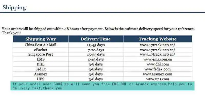 • Shipping: