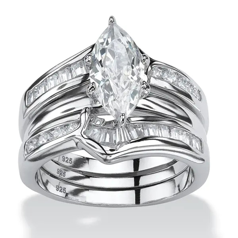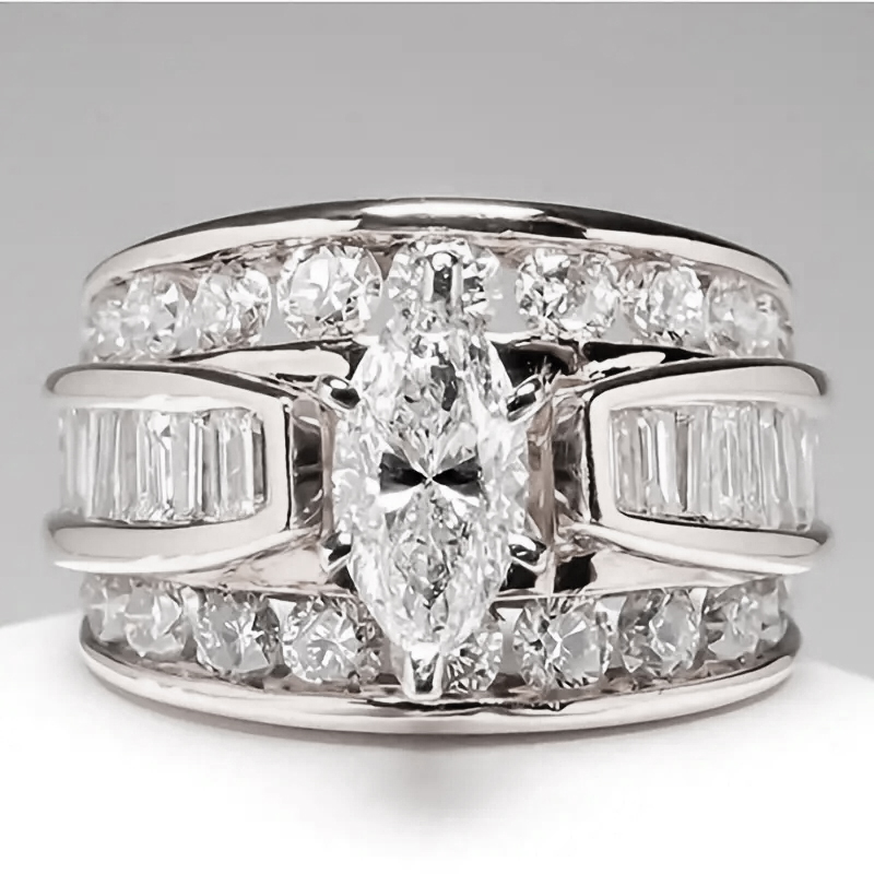 Luckacco Luxury Marquis Cut Droplet Ring Women's Gorgeous Anniversary Party Jewelry Noble  Fashion Engagement Ceremony Accessories