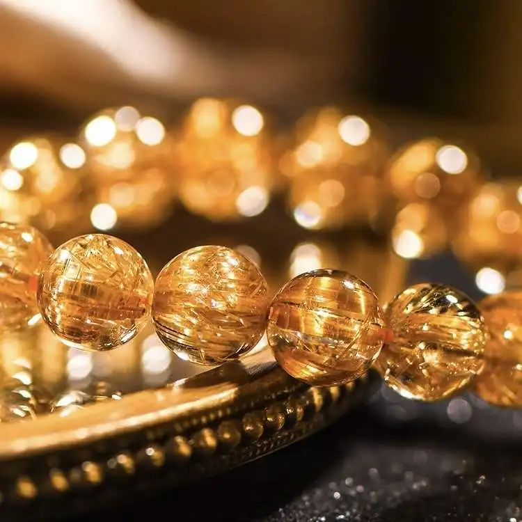 Luckacco Natural Brazil Old Ore Dragon Robe Titanium Crystal Bracelet Crystal Women's round Beads Bracelet Couple Lucky Beads Jewelry