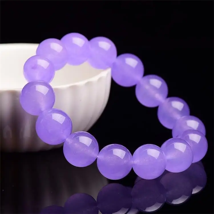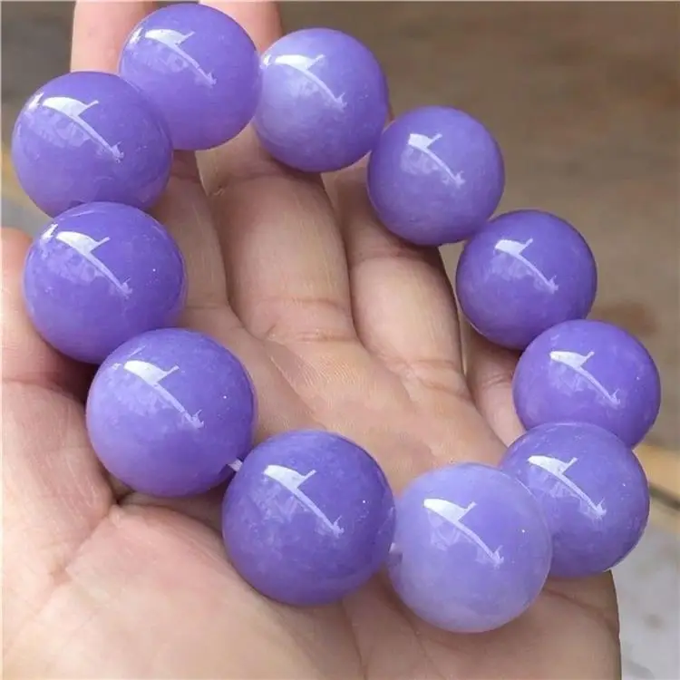 Luckacco Seed Violet Large Round Beads Jadeite Waxy Purple Quartzite Jade Bracelet